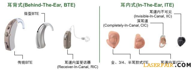 根據佩戴位置的不同,助聽器主要分為(wei) 耳背式(Behind-The-Ear, BTE)和耳內(nei) 式(In-The-Ear, ITE)。前者包括傳(chuan) 統BTE、微型BTE和耳道內(nei) 置受話器(Receiver-In-Canal, RIC),後者包括全、3/4、半耳腔式ITE、耳道內(nei) 置(ITC)、深耳道(Completely-In-Canal, CIC)及耳道內(nei) 不可見(Invisible-In-Canal, IIC)。