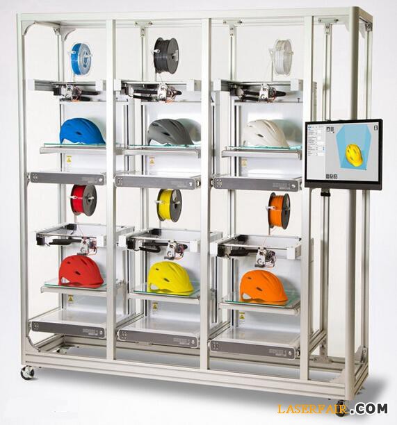 近日,知名的3D打印機製造商Type A Machines推出了一種預聯網的3D打印機集群Print Pod。該公司稱,這種方式使得10000件以下部件的製造使用3D打印比使用標準的注塑工藝更加經濟。該公司的這個(ge) Print Pod係統將他們(men) 的 Series 1 Pro 3D打印機都“捆綁”在一起,通過一個(ge) 顯示屏進行管理監控,就像一台統一的設備那樣運行。目前,這個(ge) Print Pod正在加州長灘的 RAPID 3D大會(hui) 上進行展示,在Type A Machines的展位上,一個(ge) 櫃子上18台3D打印機通過一個(ge) 屏幕同時運行。