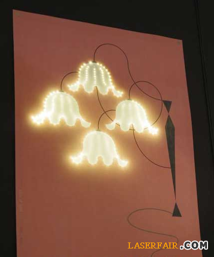 特殊紙張上繪製有圖案等繪畫,在LED關(guan) 燈時亦可充當海報。在該公司的展位上,展示了由模仿枝形吊燈、傳(chuan) 統照明等圖案與(yu) LED光線組合而成的試製品照明。