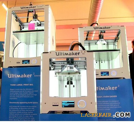 許多3D打印機製造商在這次打印展上展示了其較新的機型。比如Ultimaker,占據了一個(ge) 突出的展台展示了與(yu) Ultimaker 2同係列的兩(liang) 款新產(chan) 品——Ultimaker 2 Extended和Ultimaker 2 Go。這其實是Ultimaker 2向更大和更小兩(liang) 個(ge) 反方向發展的不同機型。Ultimaker 2 Extended的最大3D打印尺寸為(wei) 223×223×305毫米,而Ultimaker 2 Go的最大打印尺寸則為(wei) 120×120×115毫米,不過由於(yu) 沒有加熱床,它隻能使用PLA材料。