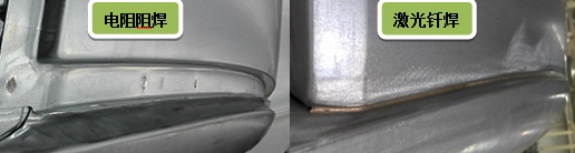 圖2 電阻點焊與(yu) 激光釺焊在頂蓋應用的外觀對比圖
