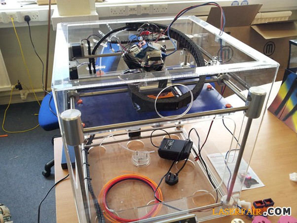 Hebda發明的這款3D打印機同時使用三種不同顏色的ABS線材。所有三根線材都通過一個(ge) 噴嘴擠出,它能夠通過快速切換線材在同一層裏打印多種顏色。該3D打印機的分辨率為(wei) 0.15毫米,其最大打印尺寸為(wei) 300×300×300毫米。至於(yu) 打印速度,Hebda還沒有認真計算過,但是他告訴我們(men) 說,“一般手掌大小的對象可以在一個(ge) 小時內(nei) 打印完成”。