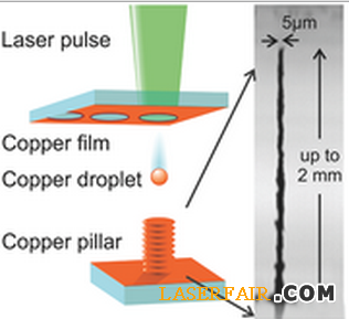 LIFT技術是一種已有的技術,主要利用高能脈衝(chong) 激光和附在在透明基片上的金屬膜。該激光脈衝(chong) 被聚焦到金屬薄膜上使其液化。 當激光的熱量在與(yu) 金屬膜接觸時,會(hui) 使金屬迅速加熱和並發生相變。而這種相變則提供了必要的推力以快速推送已經液化的金屬轉移沉積到一個(ge) 接收基片或者下麵的構建平台上。