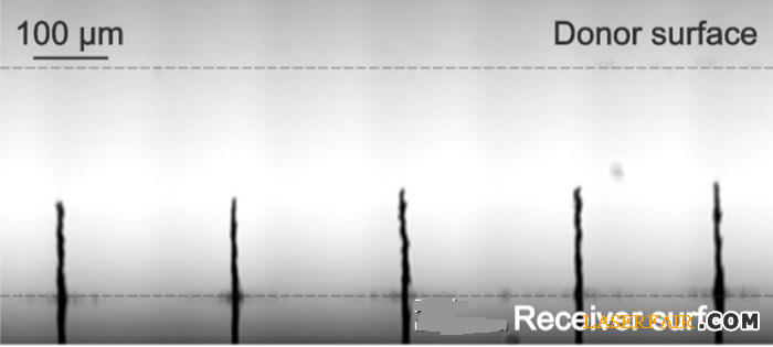 “使用LIFT技術的3D金屬打印一直局限於(yu) 低寬高比的柱子,也許這是因為(wei) 至少有兩(liang) 個(ge) 很具挑戰性的要求必須要同時滿足。首先,堆疊滴之間良好的附著力是必需的,但沉積的液滴通常固化成球形或圓環形狀。這不可避免地在逐滴堆疊時導致了孔隙率和每滴之間的接觸麵有限;第二個(ge) 要求是單滴的著陸位置被限製在先前沉積的滴液的衝(chong) 擊區域。這是不容易達到的,因為(wei) 3D打印一般需要比較大的供給-接收距離,但可以通過窄幅的能量密度獲得。”