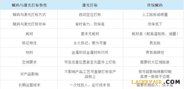 以下為電路板激光打標和傳統賦碼方式的優劣勢對比