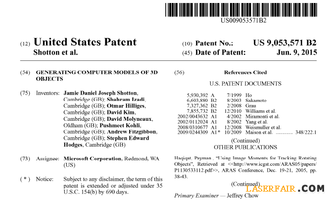 據該專(zhuan) 利描述的內(nei) 容,這項技術使用一個(ge) 基本靜態的深度攝像機捕獲物體(ti) 的深度圖像並用以生成模型。用戶可以在掃描的同時用手旋轉對象,而在最終生成模型的時候手指的因素會(hui) 被去除,因為(wei) 手指的運動與(yu) 掃描對象並不同步,因此可以通過軟件算法將其過濾掉。