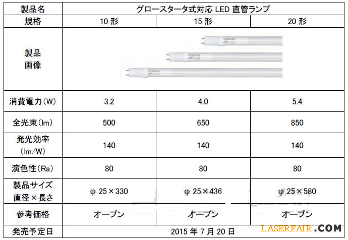 新產(chan) 品有10英寸、15英寸、20英寸3種型號。耗電量和全光通量分別為(wei) 3.2W/500lm、4.0W/650lm、5.4W/850lm。與(yu) 原來的熒光燈相比,耗電量隻有原來的約1/4,因此在廚房及盥洗台等亮燈時間短的地方,也能享受到LED化帶來的好處。新產(chan) 品的價(jia) 格為(wei) 開放式,將於(yu) 2015年7月20日開始,在日本全國通過家居用品店及家電商場等銷售,第一年度的銷量目標為(wei) 8萬(wan) 隻。