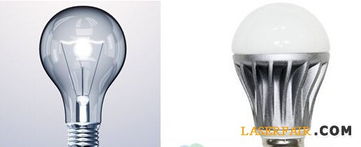▲ 白熾燈(左)與(yu) LED燈(右)