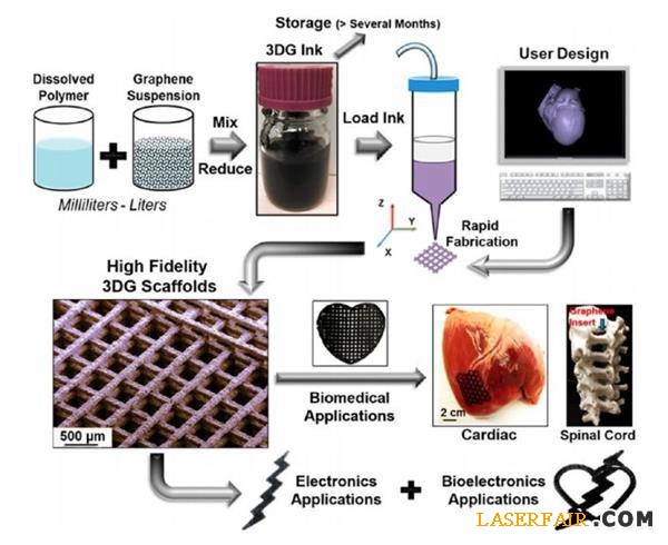 可以這麽(me) 說,Shah教授和她的團隊所得到的這種油墨,是迄今為(wei) 止石墨烯含量最高的一種3D打印材料(在Shah教授之前的紀錄大約是20%)。這意味著石墨烯獨特的電氣和機械性能將很快被投入應用。更為(wei) 重要的是,這種油墨除石墨烯之外的部分主要包括一種具有生物相容性的可降解聚酯(PLG)材料,科學家們(men) 稱,這使得該油墨能夠靈活和安全地用於(yu) 醫療應用。