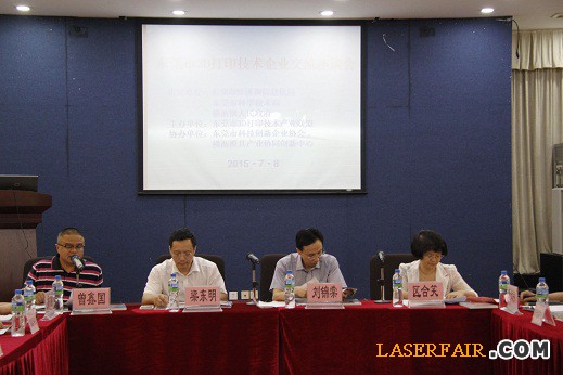圍繞交流與發展,2015年7月8日下午三點,“東莞市3D打印技術企業交流會”在東莞市科學技術館四樓會議室召開,東莞市經濟與信息化局副局長劉錦棠、東莞市經濟與信息化局科長梁東明、東莞市科學技術局產學研科科長區合笑、東莞市橫瀝鎮人民政府鎮鎮長助理黃輝宇、東莞市3D打印技術產業聯盟執行理事長曾鑫國等領導出席了本次會議。