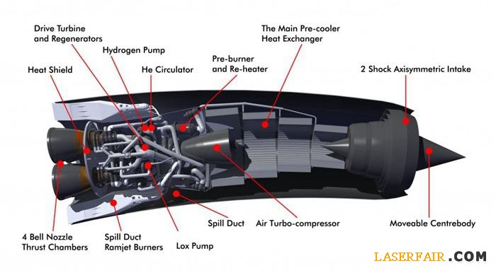 這種SABRE發動機是Reaction Engines公司同時在開發的“單級入軌雲(yun) 霄塔(Skylon)空天飛機的關(guan) 鍵,根據設計,雲(yun) 霄塔空天飛機將可以從(cong) 傳(chuan) 統的機場跑道自行發射進入地球軌道。而雲(yun) 霄塔的SABRE發動機通過從(cong) 大氣中吸入氧氣將飛機的速度推升至5.4馬赫(超過6000公裏/小時),然後切換至氫燃料並使用內(nei) 置的液氧。為(wei) 了能夠使發動機能夠在極端的大氣條件下工作,它需要能夠在不到百分之一秒的時間裏將吸入發動機的空氣流從(cong) 超過1000℃降低到零下150℃。如今它做到了這一點,而且隻增加了一點額外的重量。