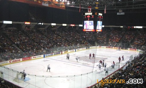 圖1:雷曼光電LED倒梯型懸掛屏在加拿大冰球館