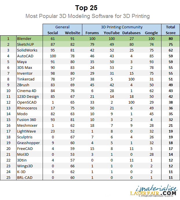 “SketchUp最近正在推動可3D打印對象的分享,因而未來它在“數據庫”這一塊得到的分數有可能進一步增加。”i.materialise團隊在其博客中說。