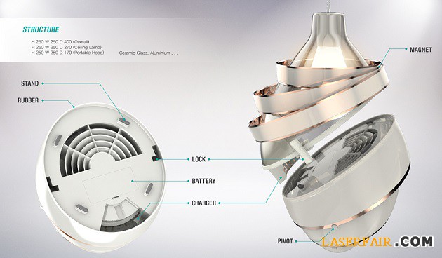 這款產(chan) 品為(wei) 國外設計師Seoyeonjin Choi的設計作品,在作為(wei) 抽油煙機的同時也可以變身營造就餐氛圍的燈具。