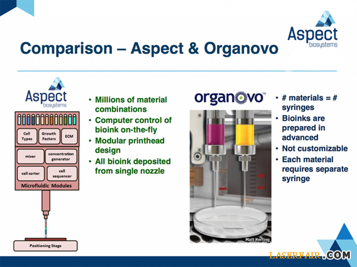Aspect Biosesystems是於(yu) 2013年從(cong) 英屬哥倫(lun) 比亞(ya) 大學(UBC)分出來,目前的業(ye) 務是3D打印人體(ti) 組織以用於(yu) 藥物測試,其最終的目標是實現器官打印。這些看上去與(yu) 知名的3D生物打印公司Organovo沒有什麽(me) 不同,而不久前Organovo剛剛通過股票增發募集了4000萬(wan) 美元的資金。