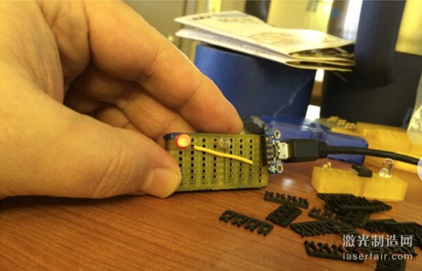 “為(wei) 什麽(me) 這很酷?好了,我們(men) 現在看到的麵包板是一個(ge) 平平的、很無聊的東(dong) 西,盡管它們(men) 可以組合成一個(ge) 更大,但是同樣方方正正的東(dong) 西。但是使用3D打印,我們(men) 可以製作出任何形狀或大小的麵包板,它們(men) 可以被製成飛機機身或汽車人的造型,或者根據電子產(chan) 品的要求打印出相應的形狀。”
