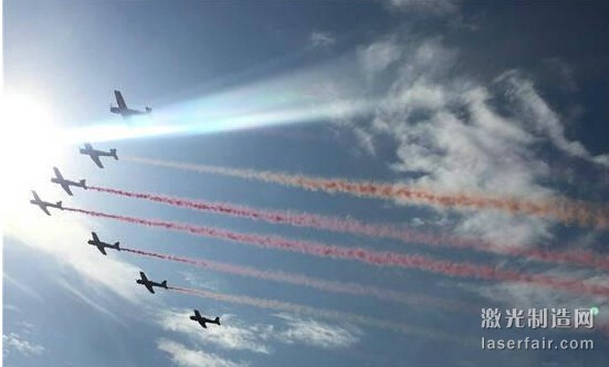 空軍八一飛行表演隊隊長、空軍上校曹振忠介紹稱,這次通過天安門時候的彩煙使用的是新研製的液體拉煙。曹振忠說,因為三代戰機的推力比較大,溫度比較高,對煙的影響比較大。這次“9·3”閱兵,改進了拉煙係統。這種拉煙方式也將使用到這次開放日的空軍飛行表演隊的表演中。
