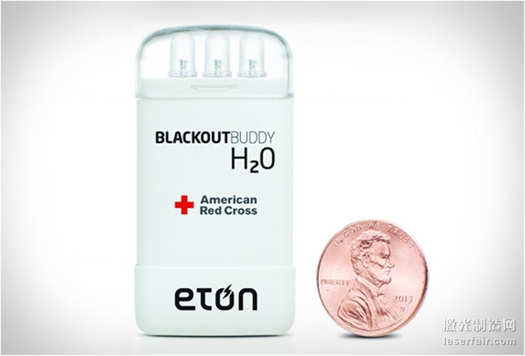 這是一款名叫Blackout Buddy H2O的便攜式LED應急燈,出自美國Eton公司。應急燈,尺寸僅(jin) 6.5x 3.4x 1.5cm,重量23g,從(cong) 外形上看是一個(ge) 隻有打火機那麽(me) 大的白盒子,上麵有三個(ge) LED燈泡。H2O是一款不需要充電的應急燈,你所做的隻是往裏麵加水。