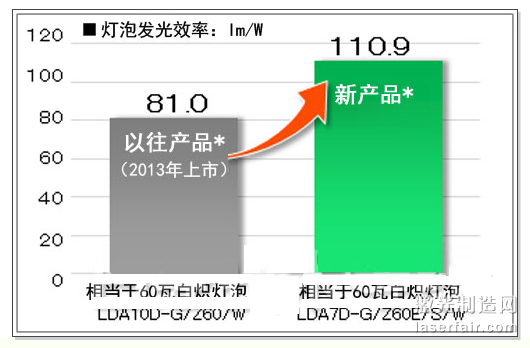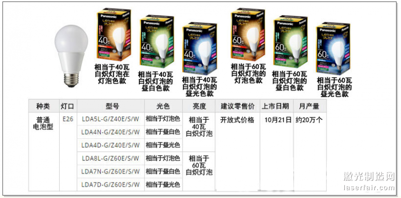 更新的全方向型LED燈泡產(chan) 品及其主要性能指標。圖片由鬆下提供。