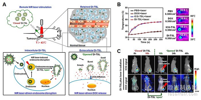 近紅外激光遠程調節腫瘤部位溫度上升和精確控製藥物釋放