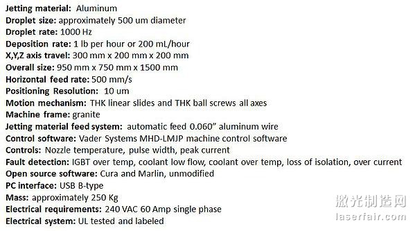 下麵為(wei) Mark1金屬3D打印機的技術規格: