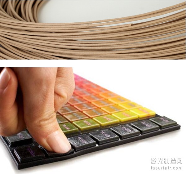 上圖:木質線材。下圖: Stratasys的柔性顏色調色板