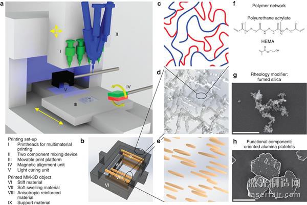 近日,蘇黎世聯邦理工學院(ETH Zürich)的複雜材料研究人員開發出了一種3D打印方法來開發設計具有精美微結構特征的複合材料。在此之前,這種結構特征隻在自然生長的生物材料中見到過。利用這種“多材料磁力輔助3D打印係統(MM-3D printing),研究團隊已經有效地超越了3D成型能力,甚至進入了一種5D設計空間。據稱這一技術最終可以開發出多功能的變形軟裝置,這種裝置可以用於(yu) 創建類似人體(ti) 肌腱或者肌肉的機械連接係統,或者製造軟機器人的選擇性拾取-放置係統等。