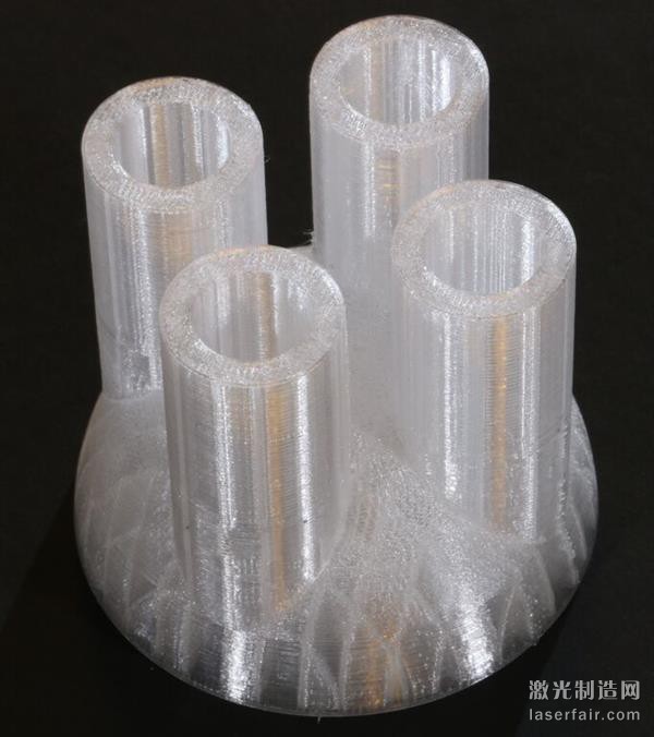 而且,這種材料的熱特性使其具備了相當大的應用範圍。“最值得一提的是, T-lyne中的沙林樹脂已經符合了FDA 21CFR 177.1330(a)標準,可以用於(yu) 假肢應用。另外它最獨特的功能是您可以將使用這種材料打印出來的部件浸入熱水裏,並對其進行一些輕微的調整,然後將部件冷卻,它將保持調整後的結果。T-lyne的清晰度使人們(men) 能看到部件的內(nei) 部。”Taulman3D公司稱。