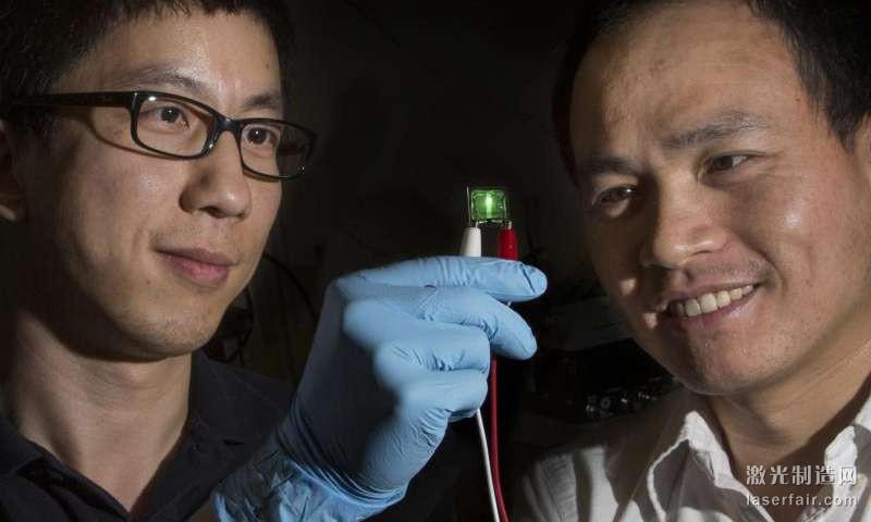物理助理教授Hanwei Gao(音譯:高漢偉(wei) )與(yu) 化學工程副教授Biwu Ma(音譯:馬必武)正在使用一類稱為(wei) 有機金屬鹵化物鈣鈦礦的材料製作一個(ge) 高性能LED。他們(men) 將研究結果發表在《先進材料》雜誌上。