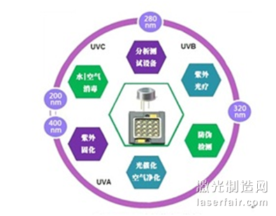 圖2 不同發光波長的UV LED應用領域
