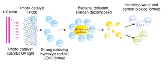 圖3 紫外線燈殺菌和去除有機汙染物(VOC)原理
