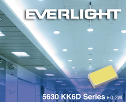 隨著全球節能意識高漲,各應用傾(qing) 向使用LED做新世代的光源,對於(yu) LED照明元件的各方麵表現更加重視,億(yi) 光采用最新技術,本季特別推出業(ye) 界第一、無人可及的全新高光效5630KK5D及5630KK6D係列(0.2W),發光效率可提升至205lm/W以上(5000K色溫),最符合對發光效果極高的商業(ye) 照明燈管應用需求。