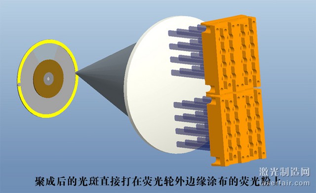 如果既要確保高亮度又要長壽命,可以采用十倍於(yu) 轉盤型熒光體(ti) 照射強度的激光照射在滾筒型熒光體(ti) 上,這樣滾筒型激光熒光光源可以實現轉盤型激光熒光光源十倍的亮度輸出與(yu) 十倍的壽命。