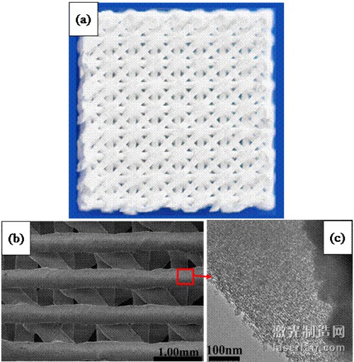 圖5. 3D打印具有編製大孔結構(a, b)以及有序介孔結構(c) 的多級孔結構的生物陶瓷支架,該支架具有優(you) 越的成骨活性。