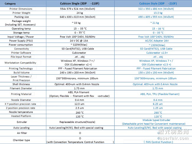 HyVision同時推出的另外一款3D打印機則是更加成熟的Cubicon Single(3DP-110F),這是一款大尺寸的專(zhuan) 業(ye) 級3D打印機,可支持ABS/PLA材料,其打印尺寸也更大,最大可達24×19×20厘米。據稱其使用了韓國首個(ge) 自行設計的可更換擠出機,並擁有類似於(yu) Style的打印床自動找平功能。