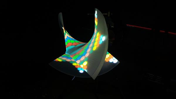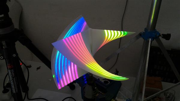 簡單地說,他們(men) 使用了一台大尺寸的German RepRap X400 3D打印機打印出了一個(ge) 精準的大型雙螺旋結構。這種結構的尺寸為(wei) 125毫米×125毫米,並用一種半透明的白色PLA材料製成,這種螺旋的作用就是放置在一個(ge) 旋轉台上充當投影表麵。與(yu) 此同時,該螺旋會(hui) 跟投影儀(yi) 和反射鏡形成一個(ge) 特定的角度。