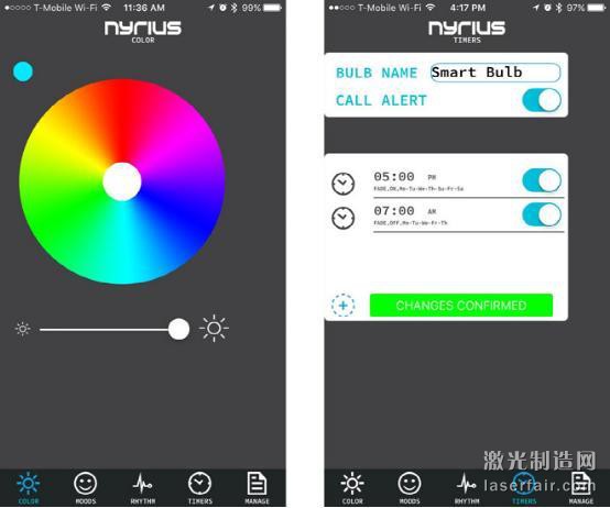 這款Nyrius燈泡就是其中相當不錯的一款,它可以通過ioses或androids設備控製,並且可以調整各種顏色和亮度,甚至當你的手機有來電的時候還能不停的閃爍進行通知。