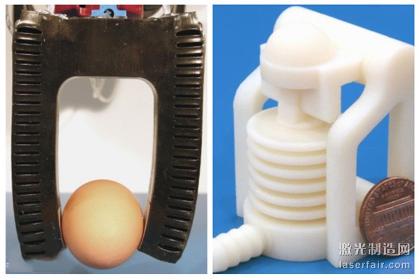 除此之外,MacCurdy和他的同事們(men) 還製造出了3D打印的波紋管致動器,以及能夠準確地拾取像雞蛋那樣脆弱對象的流體(ti) 致動夾具等。