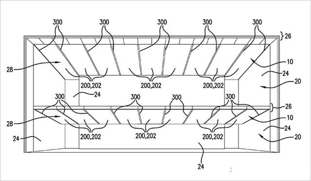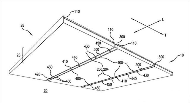 美國專(zhuan) 利與(yu) 商標管理局授予蘋果的這項專(zhuan) 利的編號為(wei) 第9217247號美國專(zhuan) 利,專(zhuan) 利名稱為(wei) “天花板係統”,專(zhuan) 利文件中詳細說明了一種室內(nei) 照明係統,這種照明係統由鋪天蓋地的光照天花板麵板和線性光槽組成。