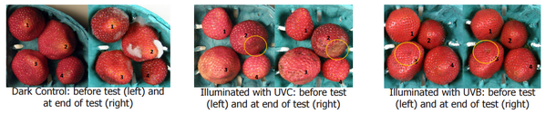 這份白皮書(shu) 也提到USDA研究中,某些蔬果上架壽命在UV LED光照下提升兩(liang) 倍。尤其是草莓在UV LED照射下,較其他蔬果而言,大幅延長架上壽命。
