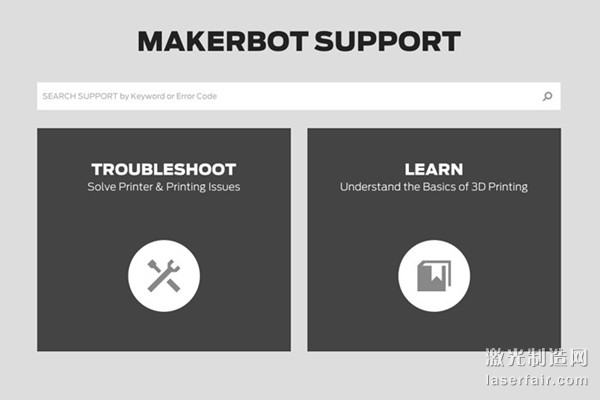 在產(chan) 品部件,如智能擠出機,的質量問題上栽了一個(ge) 大跟頭之後,知名3D打印機廠商MakerBot越發地重視產(chan) 品的技術支持工作了。本周,該公司在其網站上推出了一個(ge) 全新的支持中心,並承諾要使客戶支持和故障排除“又好又快”。其支持頁麵經過了精簡,隻包含了兩(liang) 個(ge) 部分:診斷( Troubleshoot)和了解(Learn)。了解部分提供了詳細的產(chan) 品信息,而診斷部分則通過一步一步的問題,引導用戶盡可能容易的獲得一個(ge) 解決(jue) 方案。