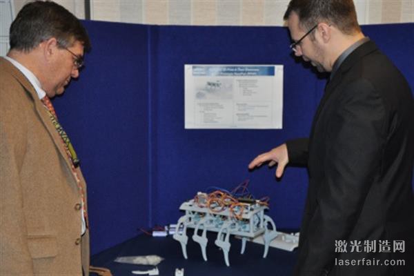 更令人印象深刻的是活動中展出的六足機器人(HexPod Robot),該機器人仍處於(yu) 開發階段。它的目標是輔助作戰人員,比如通過低功耗運動穿越困難地形等。這款機器人從(cong) 最初的概念到變成一個(ge) 完整的3D打印原型隻用了四個(ge) 星期(原本通常要用3到4個(ge) 月)。有趣的是,在離活動隻有12個(ge) 小時的時候,工程師們(men) 還通過快速調整減輕了它的重量,因為(wei) 他們(men) 覺得它太重了。