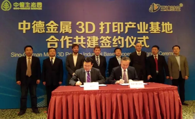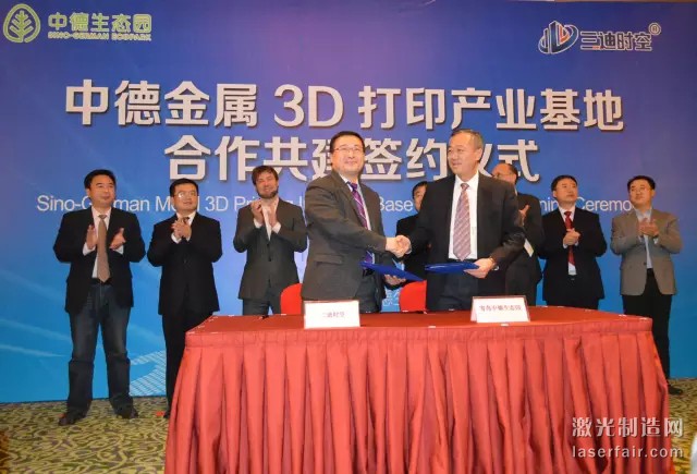 2016年1月21日,三迪時空與(yu) 中德生態園管委會(hui) 進行了中德金屬3D打印產(chan) 業(ye) 基地合作共建簽約儀(yi) 式,欲打造集研發設計、設備開發製造、原材料生產(chan) 協同一體(ti) 的金屬打印生態產(chan) 業(ye) 鏈,並深化中德企業(ye) 在工業(ye) 4.0領域的合作發展,促進產(chan) 業(ye) 創新發展。同期,青島德國企業(ye) 中心開業(ye) 儀(yi) 式在中德生態園舉(ju) 行了隆重的開業(ye) 典禮,這標誌著國內(nei) 規模最大、標準最高、功能最全的德國企業(ye) 服務平台正式投入使用。
