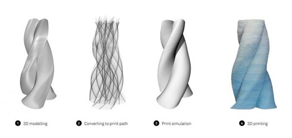 基本上,該公司已經開發出一種以高分辨率的方式3D打印混凝土的方法。由於(yu) 他們(men) 可以在現場自己製造水泥,因此很容易打印出彩色對象,甚至創造出顏色變化的效果。除此之外,Bruil的機器還可以實現不同的造型結構——比如波浪——從(cong) 而給建築師提供了一種創造性的設備,而非單純的製造工具,讓他們(men) 的想法通過混凝土來實現,無論是形狀、顏色還是紋理。Theo Voogd因此預測,這將會(hui) 對建築行業(ye) 產(chan) 生革命性的影響。為(wei) 了進一步適應建築師的需要,Bruil還開發出了一款定製的CAD軟件,可以很方便地將3D模型轉換成他們(men) 的機器的打印路徑。重要的是,這也使建築師在啟動一個(ge) 昂貴的3D打印過程之前能夠預覽一下最後的結果。
