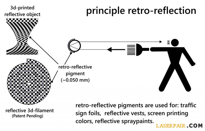 據Kai稱,這樣一種新型3D打印材料其實可以追溯到他在1998年的時候獲得的一項發明專(zhuan) 利。“在1998年我發明了一種可反光的噴漆,可以使騎自行車的人更加顯眼,從(cong) 而保證其交通安全。”他解釋道。“有了它,汽車司機就可以通過車燈很容易地看到他們(men) 。它可以噴灑到衣服或者自行車的車輪上。這種噴漆在衣服上的時候肉眼幾乎看不出來,而且也很容易洗掉。”