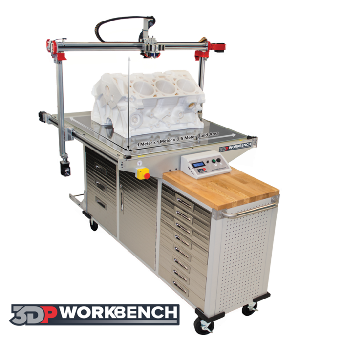 日前,該公司又推出了一款新的大型3D打印機3DP Workbench。據了解,3DP Workbench的最大構建尺寸為(wei) 1×1×0.5米,除此之外,它還采用了工業(ye) 級的機電係統,使得其層分辨率達到了70微米,打印速度達到70—100毫米/秒。