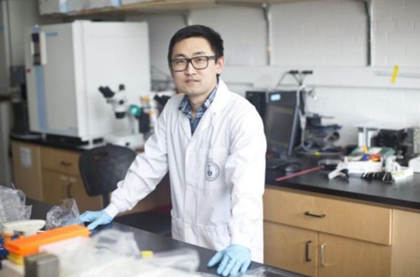 多倫(lun) 多大學的研究員Boyang Zhang在他的實驗室裏,他在那裏開發AngioChip。