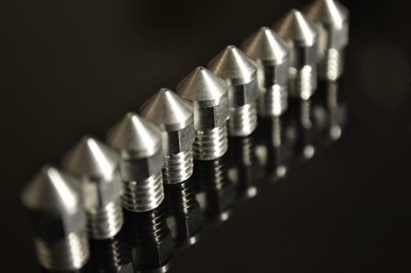 日前,來自法蘭(lan) 克福的3D打印初創公司DDDMaterial最近在眾(zhong) 籌平台Kickstarter推出了一款很有意思的新產(chan) 品——使用優(you) 質鎢材料製成的3D打印機噴嘴。據了解,該創業(ye) 團隊由於(yu) 對現有黃銅材質打印噴嘴的耐久性、打印精度——尤其是在使用磨蝕性很高的材料時——不太滿意而受到啟發開發的這種噴嘴。他們(men) 希望藉此機會(hui) 將更耐用、強度更高而且經濟的3D打印噴嘴推上市場。