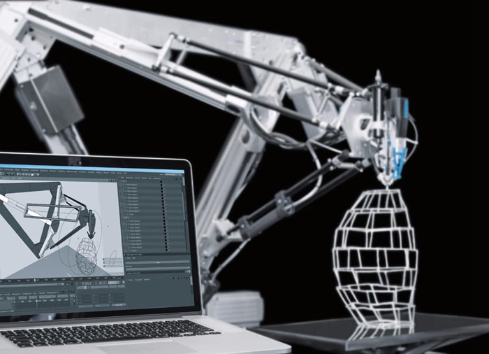 據了解,綁在其三腳架似的機械定位係統的末端的是一個(ge) 精確的噴絲(si) 頭,這個(ge) 噴絲(si) 頭上使用的是均勻的2400tex玻璃纖維。此外還有一台計算機與(yu) 其連接,通過定製的3D建模軟件為(wei) 其提供需要的位置數據。