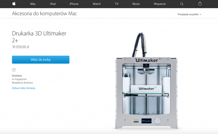 據當地媒體(ti) 報道,在歐洲12個(ge) 國家的蘋果在線商店上,赫然已經出現了知名3D打印機品牌Ultimaker的產(chan) 品,這12個(ge) 國家分別是奧地利、捷克、丹麥、芬蘭(lan) 、西班牙、挪威、波蘭(lan) 、葡萄牙、瑞士、瑞典、意大利和匈牙利。出現在這些國家蘋果商店頁麵上的是Ultimaker公司的主力3D打印機Ultimaker 2+。據天工社了解,Ultimaker是世界上最知名的桌麵3D打印機品牌之一,而且也是歐洲最大的桌麵3D打印機生產(chan) 商。